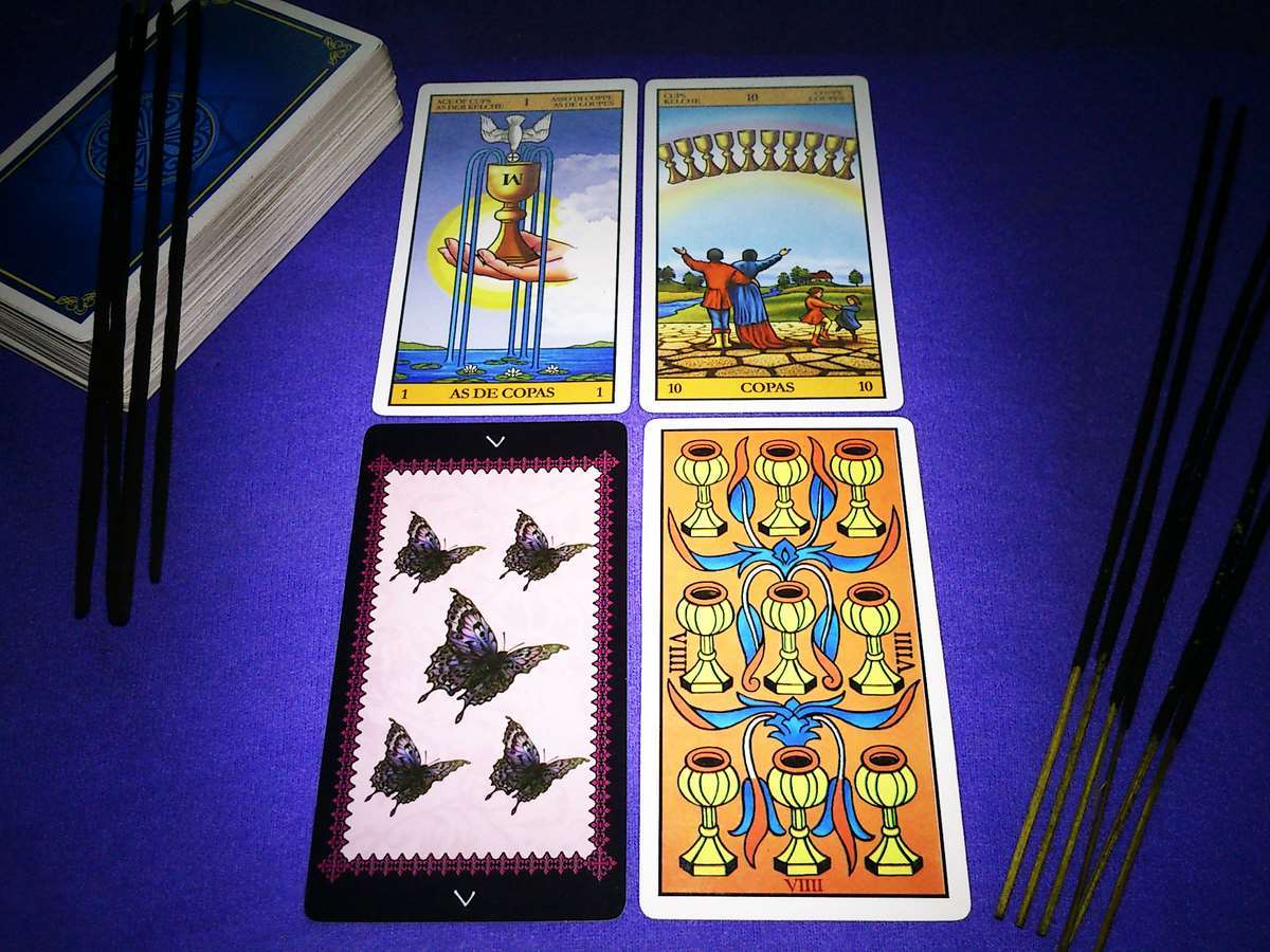 Hagamos un repaso breve por las principales características en el palo de copas y sus cartas tanto al derecho como al revés: