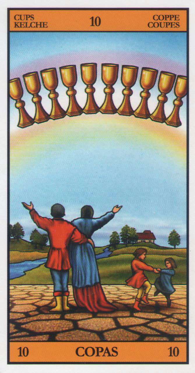 Al derecho: la alegría; abundancia en el amor; estar enamorado; dar amor libremente; sentir el amor de los demás; reuniones y celebraciones; éxito con gran satisfacción; sentirse bien; celebraciones y reuniones familiares.