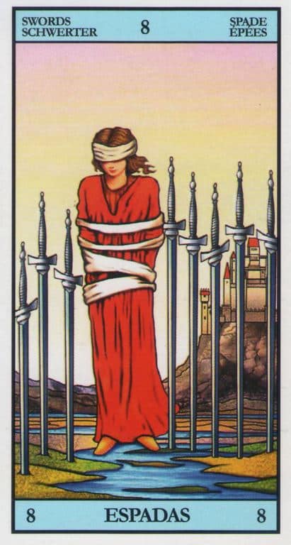 La carta puede mostrar que no hay salida, o que no es fácil, si la hay. Puede mostrar que estás impotente y que quizá, al igual que el 4 y el colgado, no debas hacer nada de momento. Como no ves salidas y caminos posibles, tal vez lo mejor sea quedarte en donde estás, hasta que puedas ver.