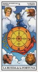 Todos sabemos ya que la vida, la existencia de todas las cosas, están dadas por ciclos, que es un permanente y continuo ciclo, de modo que estás arriba como estás abajo, pero con esta carta tienes la clara indicación de que estás en un ciclo favorable y positivo, y debes aprovecharlos antes que la rueda siga su giro y el ciclo pase a ser no tan bueno. La Diosa Fortuna te sonríe ahora, es tu un tiempo inmejorable para los Nuevos comienzos e inicios de cualquier tipo en tu vida!