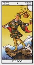 ¿Qué mejor manera de empezar algo nuevo que con el Loco? El Loco está listo para dejar atrás lo anterior con el fin de iniciar esta nueva etapa con un alegre abandono y sin preocupaciones. Él no está preocupado por sus limitaciones o las creencias del pasado, él simplemente se centra en el aquí y ahora, excitado para ver dónde puede llegar o a dónde puede ser conducido por la causalidad. No hay temores, sólo un deseo de lanzarse en el convencimiento de que todo irá bien.
